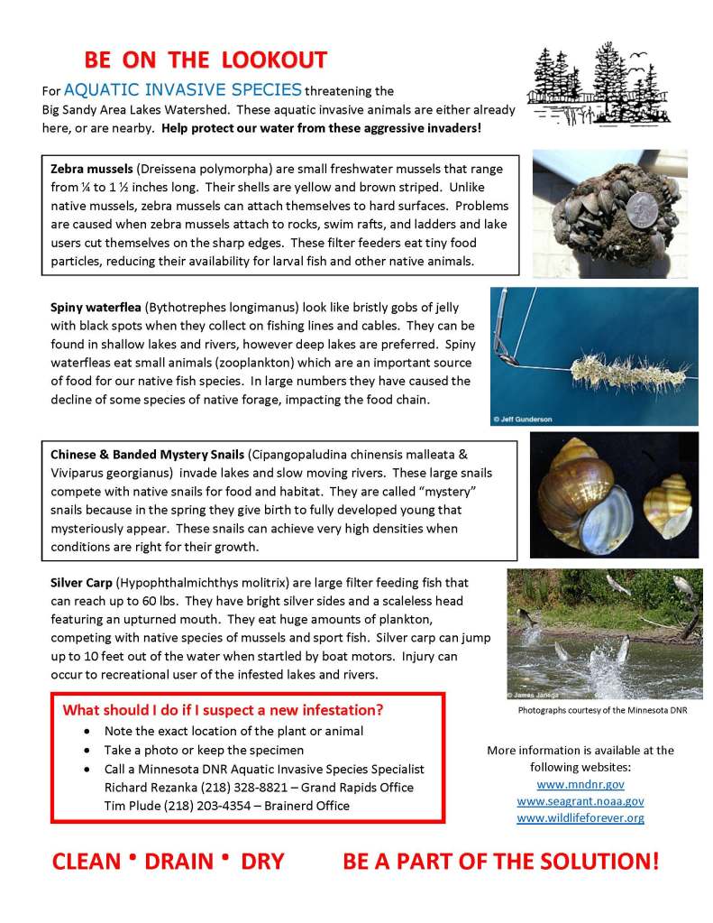 “Every person who uses Minnesota’s lakes and rivers for outdoor recreation has a responsibility to help prevent and curb the spread of AIS…because it is preventable.” Minnesota DNR.